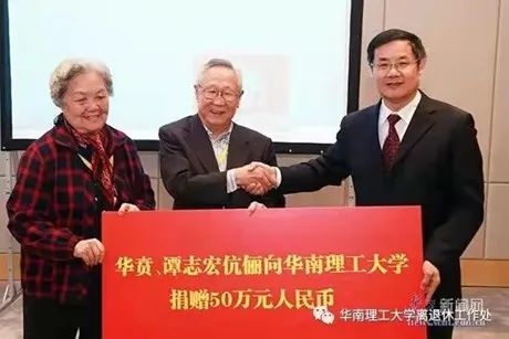 华贲教授(中)与妻子共同向华南理工大学捐赠50万元