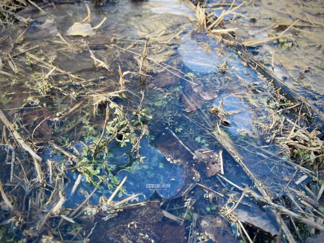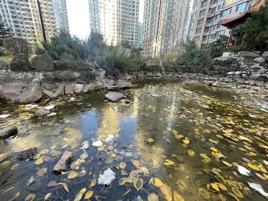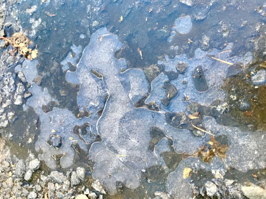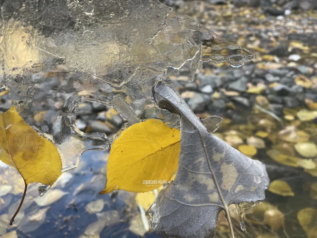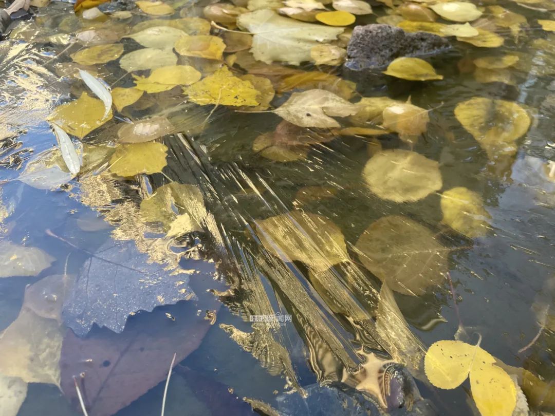 冰面下各种枯枝败叶与冰面构成的独特图案,给北国冰城的晚秋增添了不少亮色和韵味,形成一道美轮美奂的别样风景。