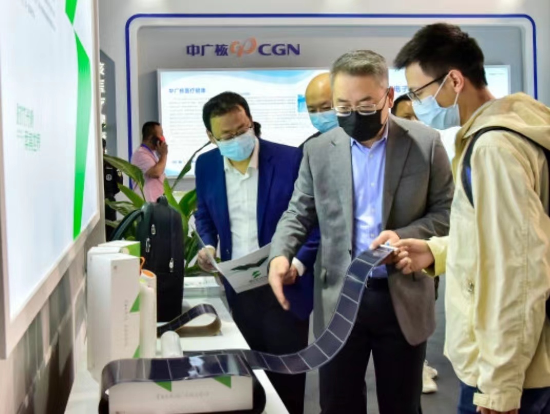 走进高端工业展区,透过电子信息、智能装备、新材料等产业的82件高精尖工业展品,展示出中国科技城的硬实力,也让人感受到绵阳工业发展的强劲动能。绵阳皓华光电科技有限公司是一家提供柔性光伏研发、制造、生产、系统化解决方案的供应商,总经理高翔指着一个可以充电的背包说:“我们的铜铟镓硒薄膜太阳能电池组件具有轻、薄、柔等特性,传统的太阳能晶硅电池每平方15公斤,我们超轻质的组件每平方400克,最薄可以做0.3毫米,可以任意折叠,安装、携带更方便。”