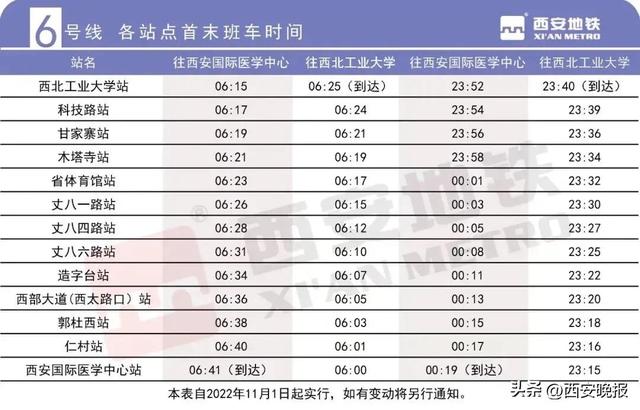 为优化地铁6号线行车组织,西安地铁于今天(11月1日)起对该线路列车运行图进行调整,方便市民乘客快捷出行。