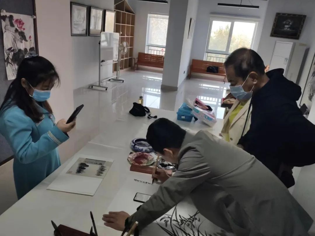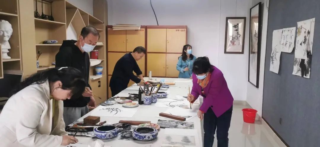 此次培训,国画老师重点对兰花的绘画技巧展开教学,从“三笔画叶”到花瓣、花蕊的绘画技法等进行逐一讲解,寥寥几笔一副空谷幽兰便跃然纸上。各位学员跃跃欲试,跟随老师的教学,认真练习,现场进行中国画创作,努力展示自己的学习成果。
