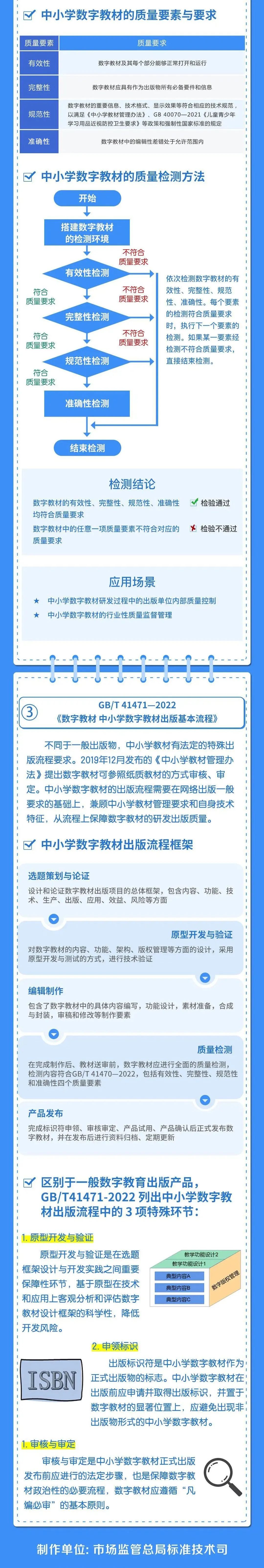 11月1日起,由市场监管总局(标准委)发布的首批中小学数字教材国家标准开始实施。国家标准包括《数字教材 中小学数字教材出版基本流程》、《数字教材 中小学数字教材元数据》和《数字教材 中小学数字教材质量要求和检测方法》。