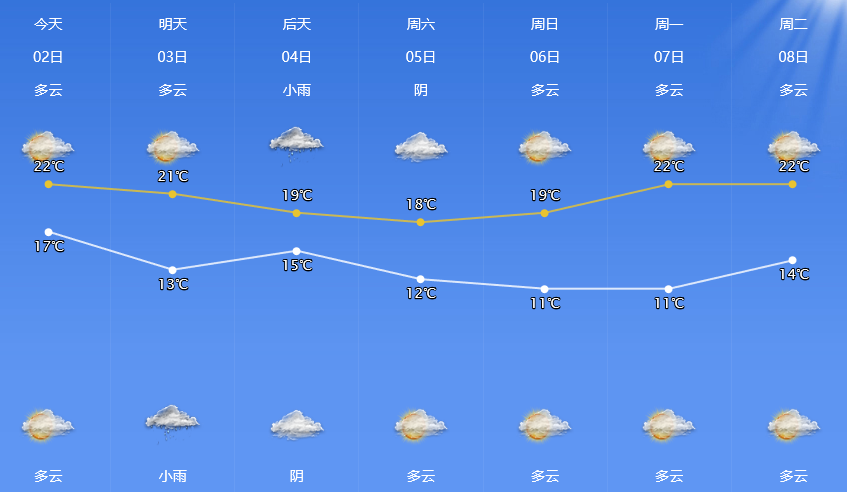 最低气温在11月5日到11月8日将下滑至11℃-12℃。这个温度,多多少少有点儿”冻“手”冻“脚的感觉了。