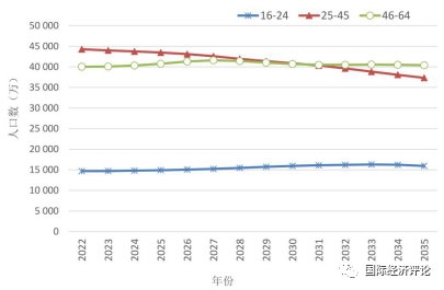 图1 劳动年龄人口的构成变化(2022-2035年)