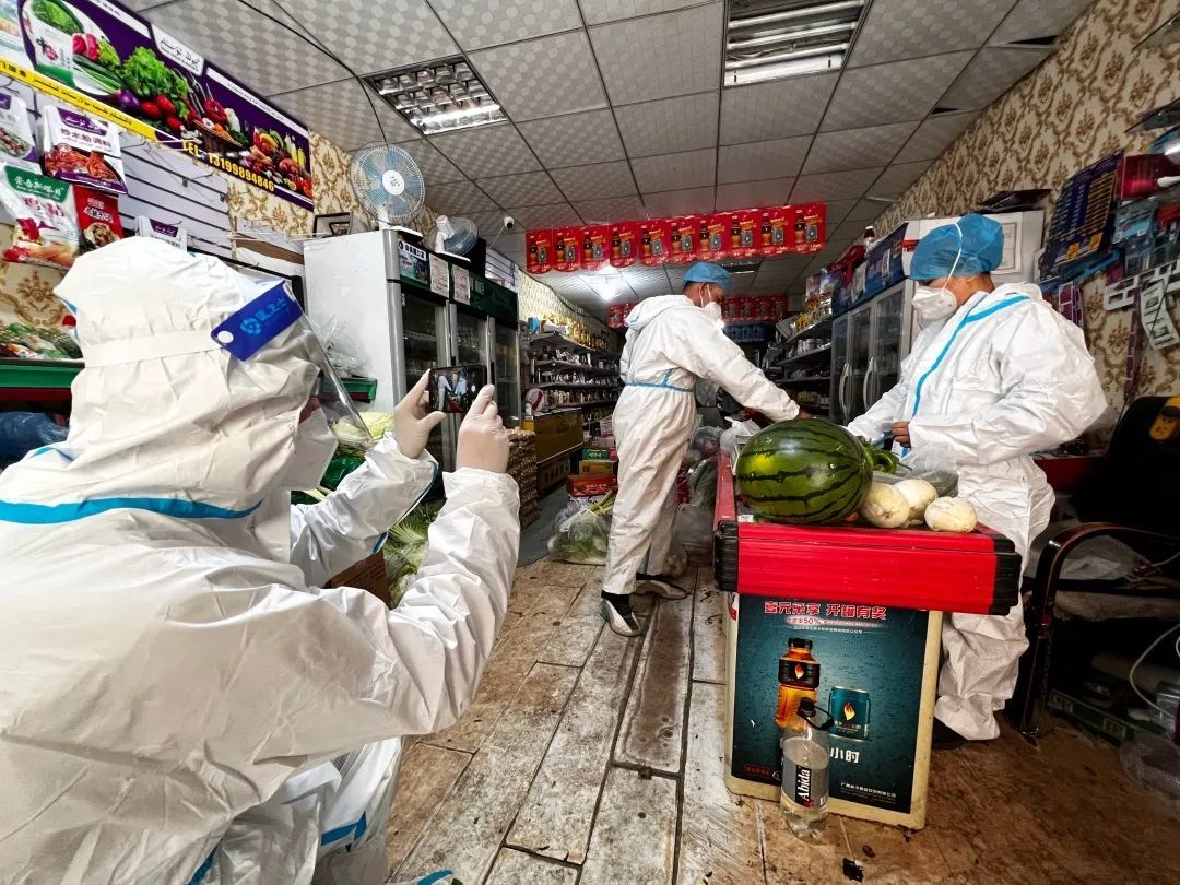 陈策为正在做保供的工作人员拍摄短视频