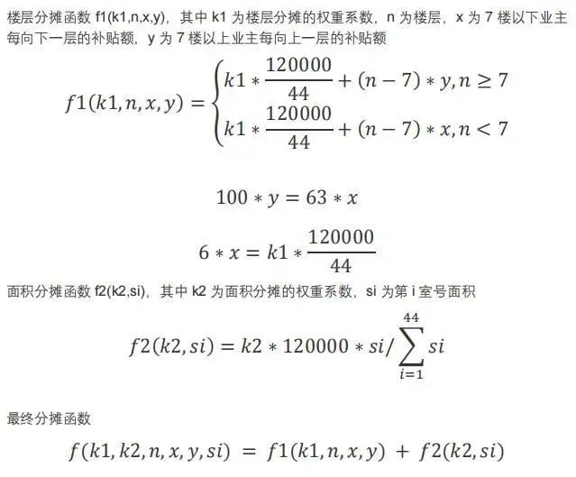 经过多番意见征集和会议商讨,分摊标准的主要争议点是应该按楼层的阶梯计算,还是按住宅的面积分摊。“不同的人的诉求是不一样的,比如有的居民觉得我家人口少,我乘坐电梯的频率较低。但综合下来,大家更赞同按照楼层和面积分摊。”林金明大学主攻数学,如今从事计算机行业的他发挥特长,精心设计了一套针对资金缺口的募集方案。“针对大家关心的这两点,我们按照住宅面积的大小和楼层的高低,设立了不同的分摊系数。”不同居民利益点各异、顾虑多样,林金明的居民身份,加之公式化的分摊依据,让大家有了更公正客观的权衡坐标。