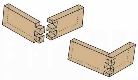 燕尾榫的榫头为梯台形,两块平板直角相接,不易受拉力脱开。