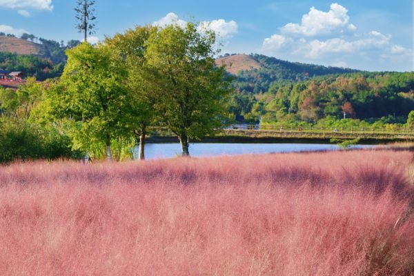 在武汉市内,也能找到大片美丽的粉黛乱子草。武汉光谷二妃山东侧,有着近2万平方米粉黛乱子草,近两年已成网红打卡地。汉江长丰桥下襄河南路的江滩,粉黛乱子草也红了,和远处蓝色的古田桥相映成趣。