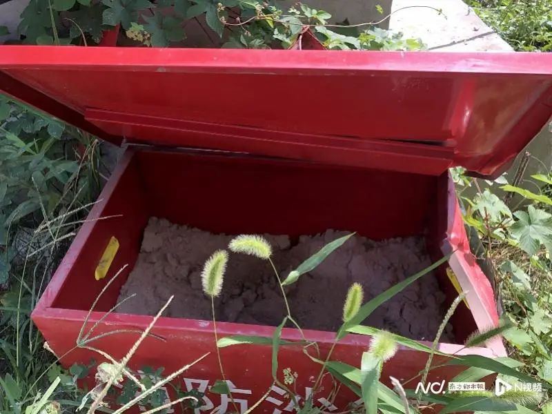 禾赛科技智能制造中心项目施工现场,消防沙箱内沙子结块,箱体变形。