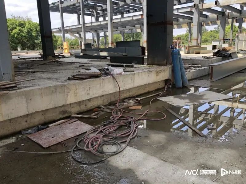 禾赛科技智能制造中心项目施工现场,氧气、乙炔皮管浸水。