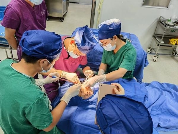 医生为斌斌手术中。