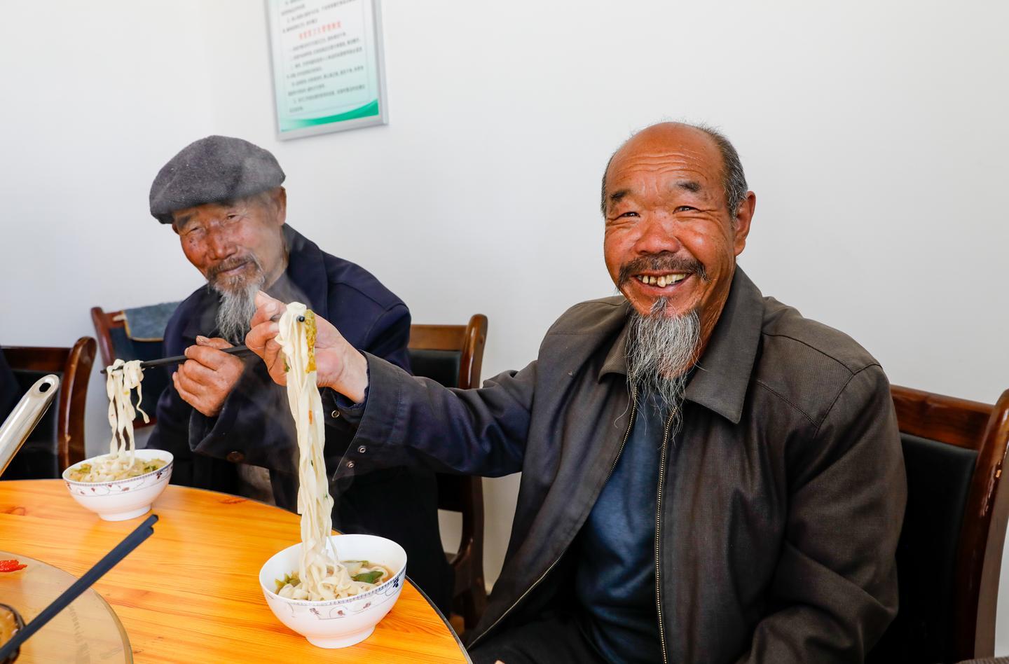 “面有宽的、有细的,多煮一下,老人们吃着也舒服。”在黑松驿村爱心食堂,厨房师傅正在为十余位老人准备午饭。香气四溢的白菜炒肉、臊子汤不一会儿就出现在了餐桌上。