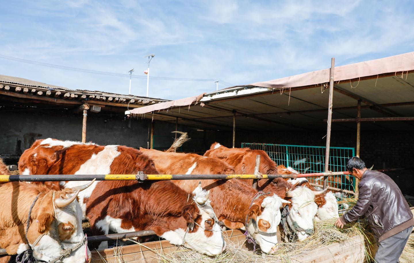 村民王兴海正在喂牛
