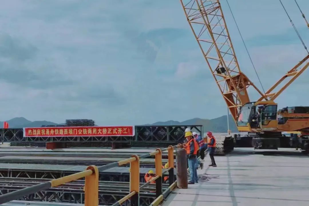西堠门公铁两用大桥作为甬舟铁路控制性工程,全长2664米,主桥采用主跨1488米斜拉-悬索协作体系桥;并选取“公铁平层”布置,即中间通行2线高铁,两侧通行6车道高速公路,是世界目前最大跨度的公铁合建桥梁。