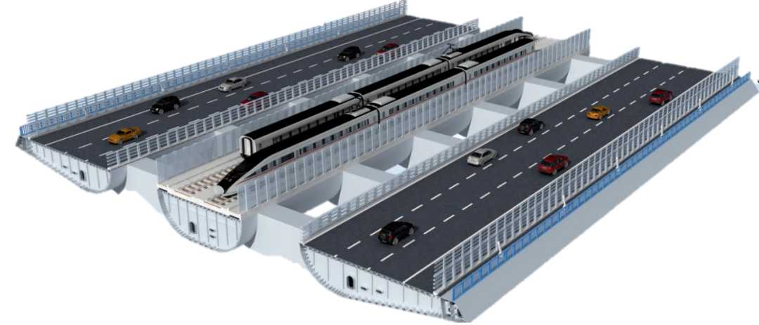 甬舟铁路西堠门公铁两用大桥“公铁平层”布置效果图