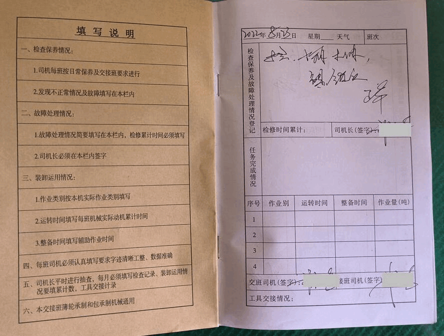 完成工作之后,司机师傅们要认真填写值班日志和保养记录,总结当日任务完成情况和设备状况,必要时与交班人员当面做好交接工作。