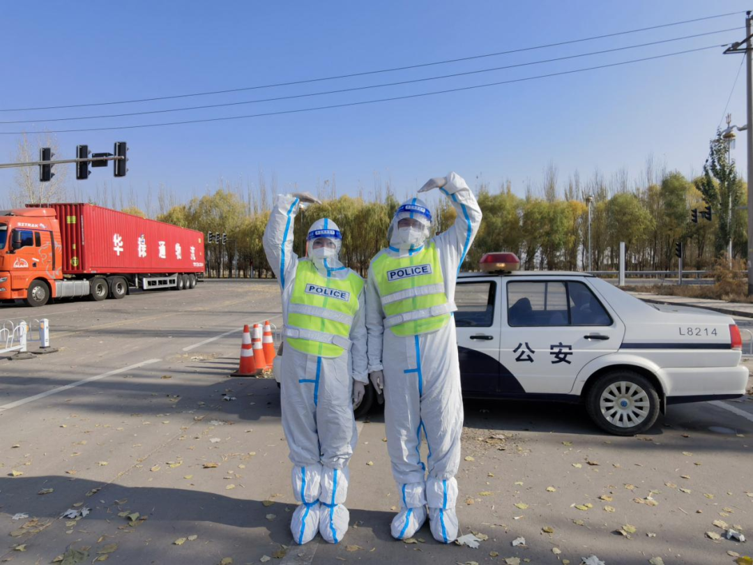 今年国庆节,徐扬和哈丹敖日格勒请了婚假,回老家赤峰市翁牛特旗举办了婚礼,婚礼办完后,他们就在单位微信群里得知同事们都上了疫情防控一线,小两口便商定提前结束婚假返岗。单位把两人安排在一个疫情防控执勤点,该执勤点周边交通流量大、人员复杂,是疫情防控的重要关口。为了守住疫情防线,夫妻二人分工明确,一个检查过往车辆通行证,一个提醒人们自觉遵守防疫规定。期间,他们协调附近菜农为周边施工单位的几十名工人解决了买菜难题,还为被困城外的大货车司机联系罐装煤气解决做饭问题……就这样,小两口在执勤点互相帮助、互相鼓励,度过不同寻常的“蜜月”。