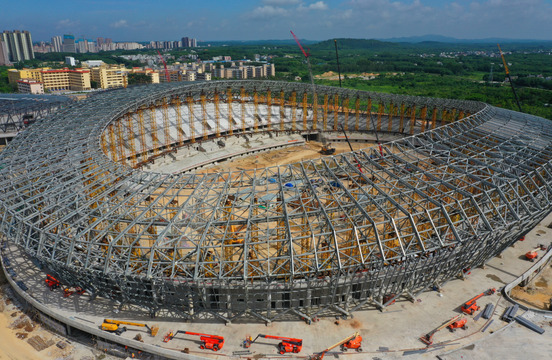 党的二十大报告指出,加快建设体育强国。中国建筑“建证美好时代”开放日第65场,走进中建一局海南省儋州体育中心项目。项目总建筑面积约10.18万平方米,建设内容包括体育场、体育馆、游泳馆及室外训练场等配套工程,可容纳近4万名观众。项目作为海南省第六届运动会开闭幕式主场馆,可承办国内一流体育赛事、文艺演出等,助力海南自贸港体育文化建设,实现全民健身活动与竞技体育运动项目均衡发展。