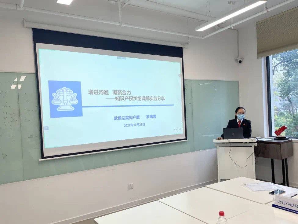 罗瑞雪法官作了题为“增进沟通,凝聚合力——知识产权纠纷调解实务分享”的专题培训,重点交流了调解工作常用的6种方法,并对“调解+司法确认”的协同治理新模式进行了分享介绍。