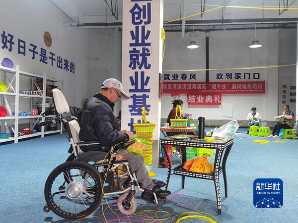 在贵阳市花溪区高坡苗族乡龙云村,村民王兴红刚参加了行军蚁公司在村里开设的藤编手工车间的培训会,学习手工编织果篮。王兴红今年47岁,10年前因不慎摔倒导致双腿残疾。由于行走不便,他只能在家养鸡种菜,勉强维持生活。“我编一个果篮能获25元的加工费,技术熟练后,一个月预计能挣2000元左右。”他说。