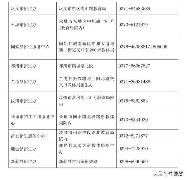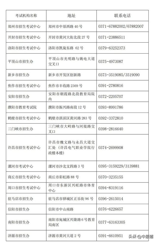 附:河南省2022年全国成人高校招生考试各地教育招生考试机构咨询电话