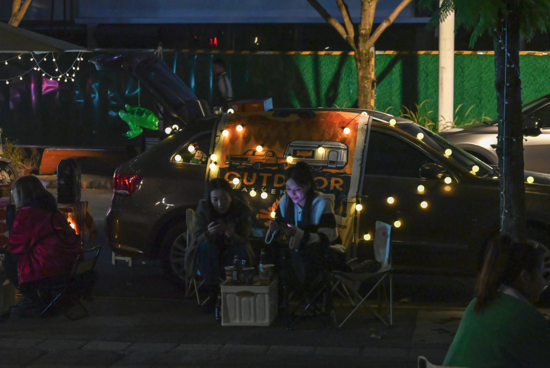 和小马有同样感觉的还有成都人“稻草人”——他这样介绍自己。“年轻人就喜欢这种,相较于酒吧的娱乐,“露营风”更适合好朋友之间,坐下来谈心聊天都会更舒服。”他说。
