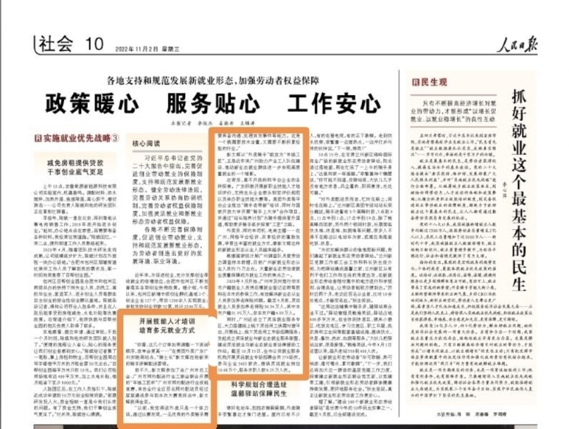 彭文辉成功的背后,离不开政府和平台企业的各种探索。广东积极开展新职业技能人才培训评价,支持龙头企业牵头制定评价规范以及举办职业技能大赛等。美团外卖等平台企业推出“骑手老带新”培训、同时与国家开放大学开展“骑手上大学”合作项目,并通过“站长培养计划”为骑手提供晋升渠道,帮助更多骑手逐步探索“工匠”之路。
