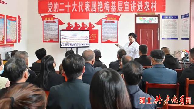 河北共产党员网讯 连日来,党的二十大代表,衡水市“‘理’赞新时代 思想在心中”基层宣讲团副团长,故城县人民医院党总支书记、院长居艳梅结合亲身经历、切身感受、具体事例,深入基层对党的二十大精神作了深入而系统的阐释,用接地气、贴生活、聚民心等新颖多样的宣传方式,让党的二十大精神“飞入寻常百姓家”。