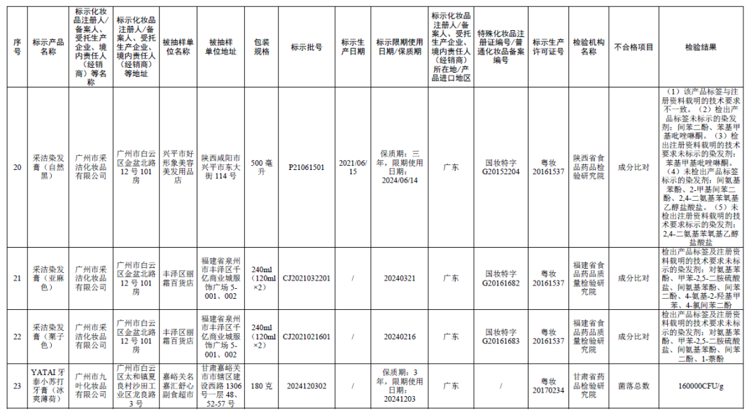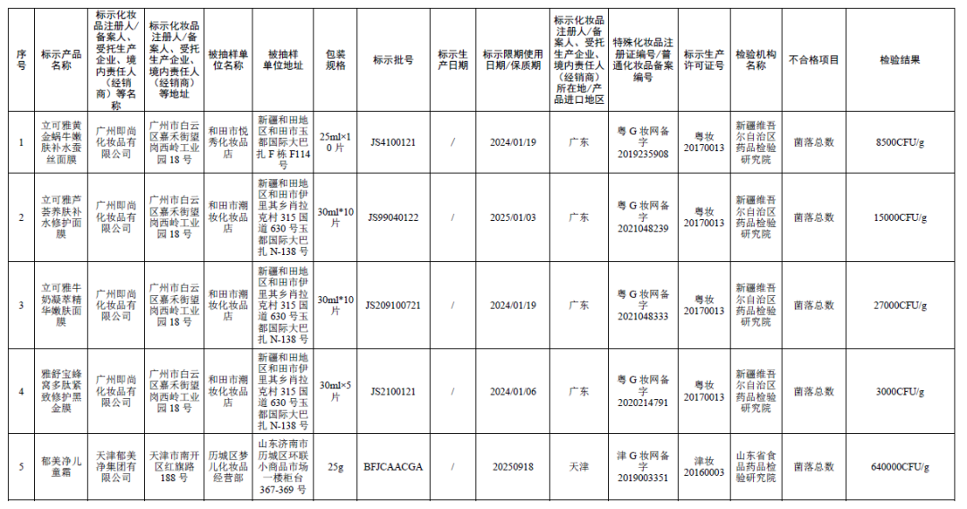 据国家药监局网站消息,在2022年国家化妆品监督抽检工作中,经新疆维吾尔自治区药品检验研究院等单位检验,标示为广州即尚化妆品有限公司生产的立可雅黄金蜗牛嫩肤补水蚕丝面膜等23批次化妆品(含牙膏,下同)不符合规定。