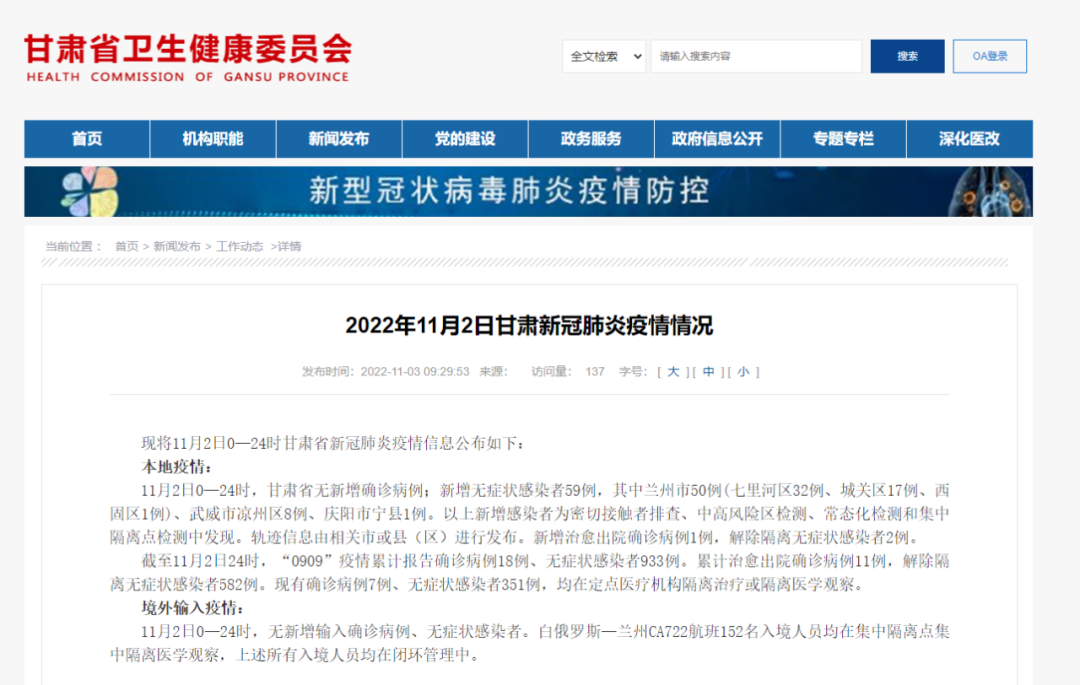 现将11月2日0—24时甘肃省新冠肺炎疫情信息公布如下:
