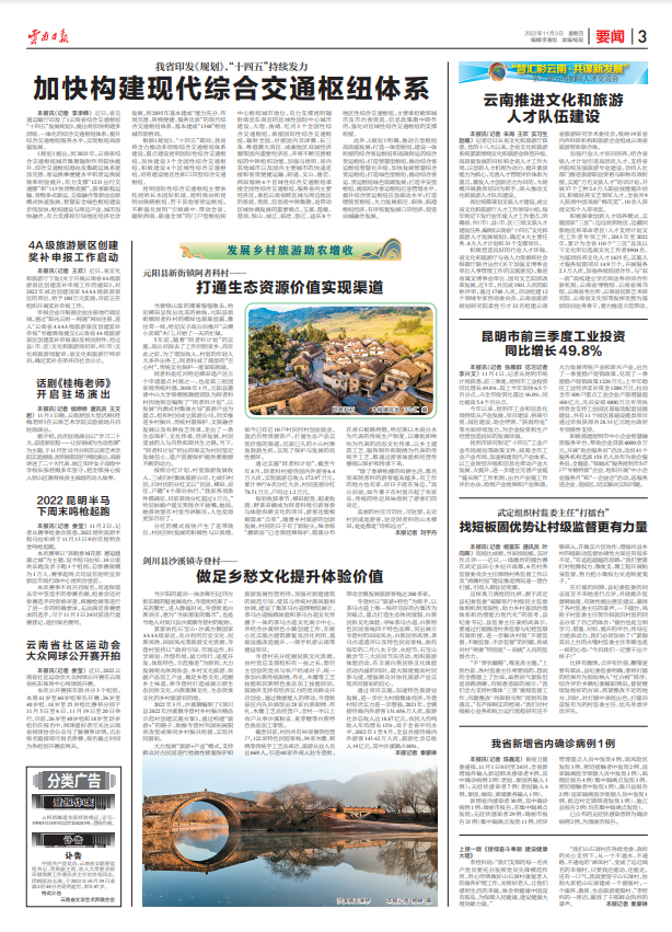 第六届云南国际人才交流会将于2022年11月12日在昆明举行。11月2日起,《云南日报》开设“智汇彩云南·共谋新发展”专栏,全面展示云南省推动人才事业高质量发展的蓬勃态势,营造真心爱才、悉心育才、诚心引才、精心用才的浓厚氛围。