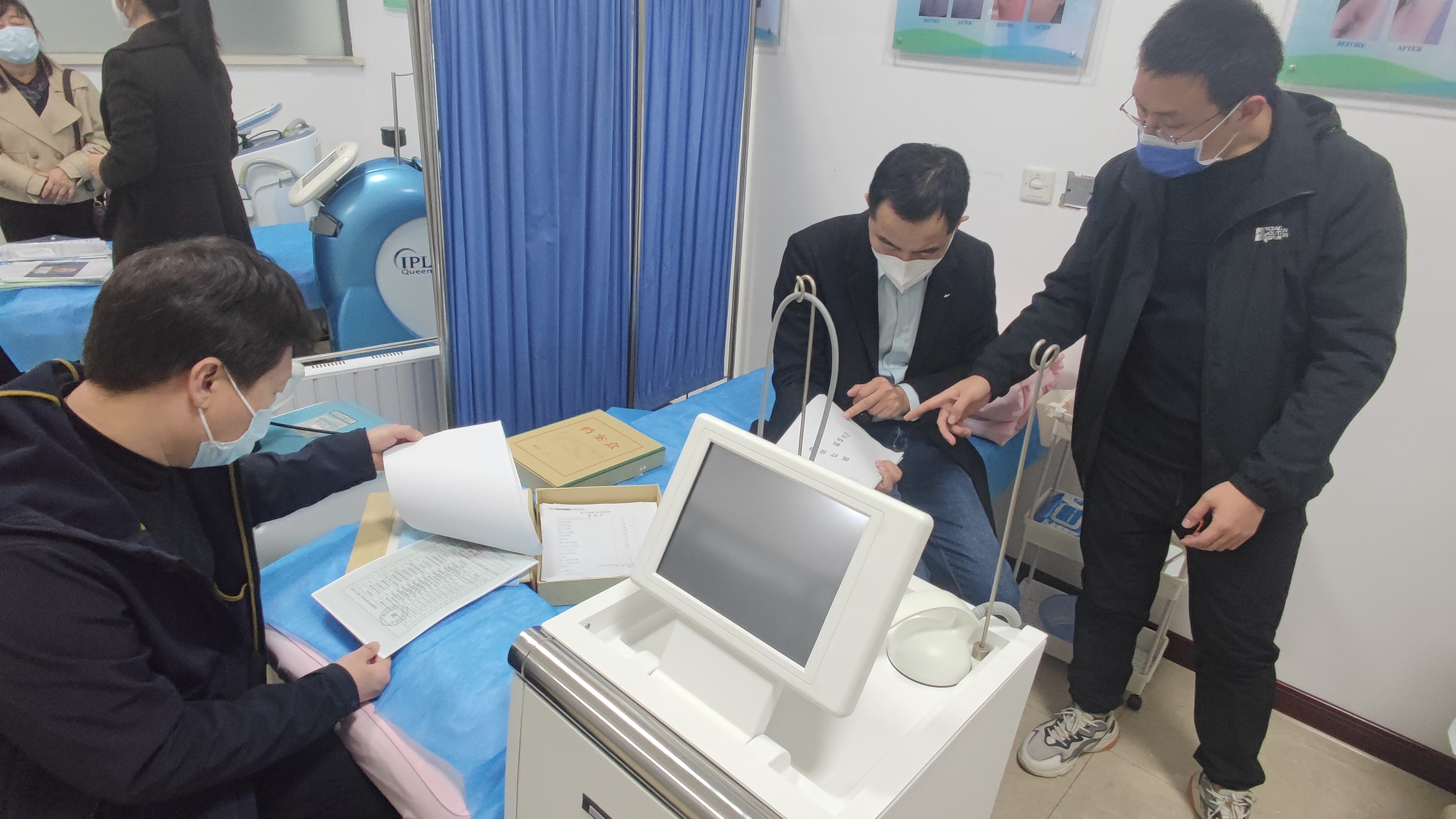 执法人员结合全市实际,细化工作步骤,将本次专项监督检查的重点放在注射用透明质酸钠、射频(皮肤)治疗仪、注射用A型肉毒毒素、强光治疗美容设备等常用医疗美容用耗材和设备上,精准施策、力求实效。核查医疗美容机构的资质是否合法,检查产品有无生产许可证、注册证及批准文号,购进渠道是否合法,票据是否齐全,是否建立健全购进验收和使用登记台账,产品储存条件是否符合要求,过期药品和医疗器械是否及时清理等。严厉查处“无证”经营、经营“无证产品”的医疗美容机构销售药械等违法违规行为,在检查的同时积极宣传《药品管理法》、《医疗器械监督管理条例》、《化妆品监督管理条例》等法律法规,要求企业按照相关管理制度等要求做好医疗器械管理工作。