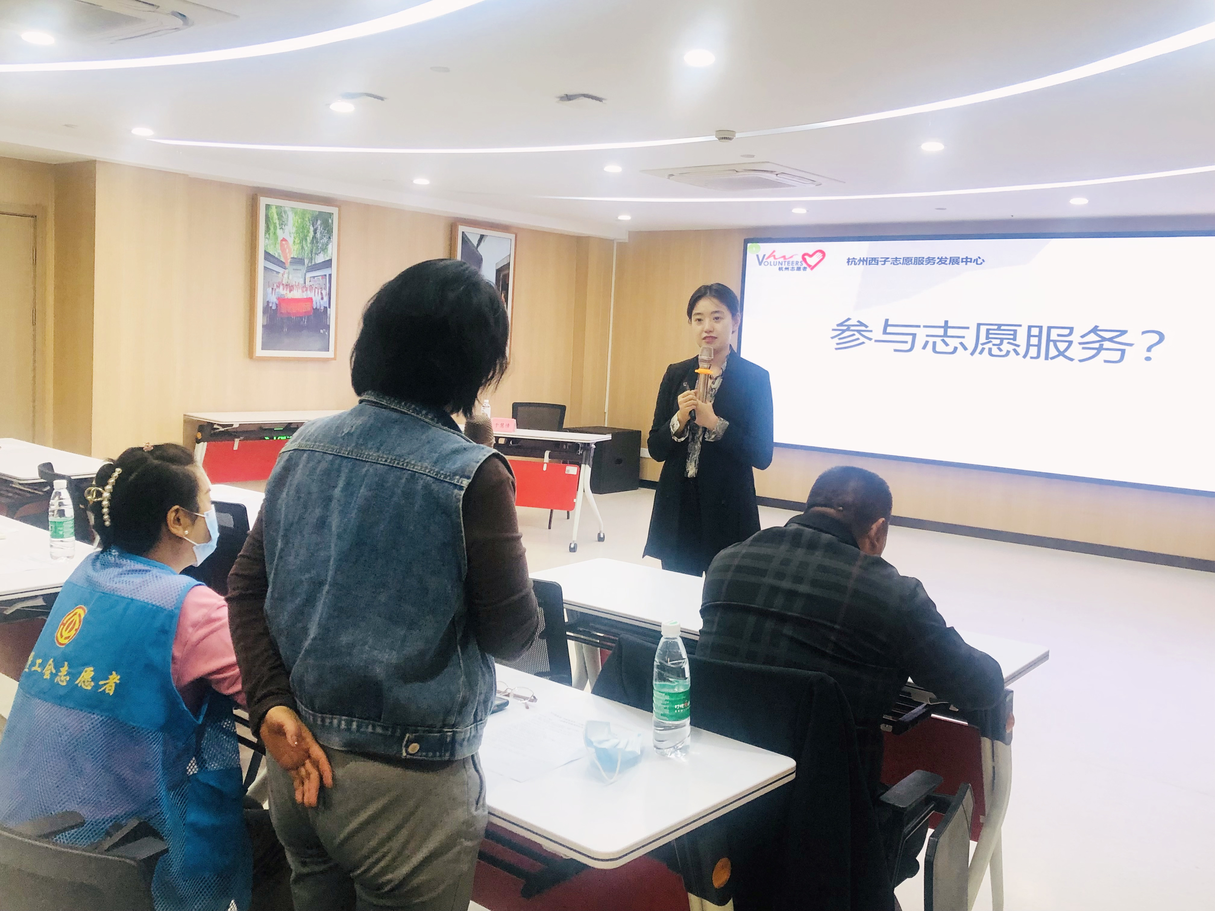 本次培训的第一堂课我们邀请了中国志愿服务中级培训师、中国青年志愿者赛会服务研究培训基地培训师、杭州志愿者培训学院培训师的于慧倩老师来做分享。于老师以《志愿者价值观和礼仪》为主题,从志愿服务基础知识、志愿者行为规范与注意事项、杭州市志愿者服务情况介绍、志愿者集体宣誓等四个方面讲解了志愿者的精神、志愿服务、志愿服务活动的社会功能及志愿精神的时代意义,倡导志愿者们要团结友爱,助人为乐,见义勇为,推动团结互助,平等友爱的社会风尚的形成,全面促进社会文明,社会和谐建设。志愿者们都纷纷表示,本次培训活动不但学习到了更多的志愿知识以及志愿服务技巧。以后我们将更好的发挥杭州志愿者热情大方、助人为乐的志愿精神,让更多的人参与到志愿服务中。