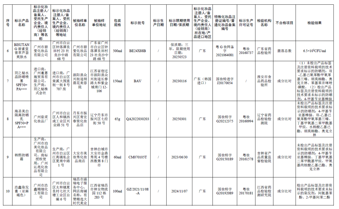 23批次不符合规定化妆品
