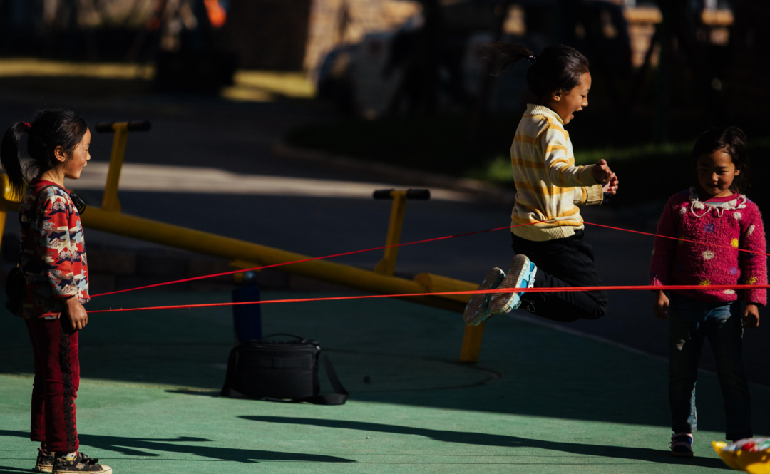 ▲ 2020年11月25日小朋友在全村84户贫困户陆续搬迁到位于昭觉县易地扶贫搬迁县城集中安置点游戏,杨涛拍摄