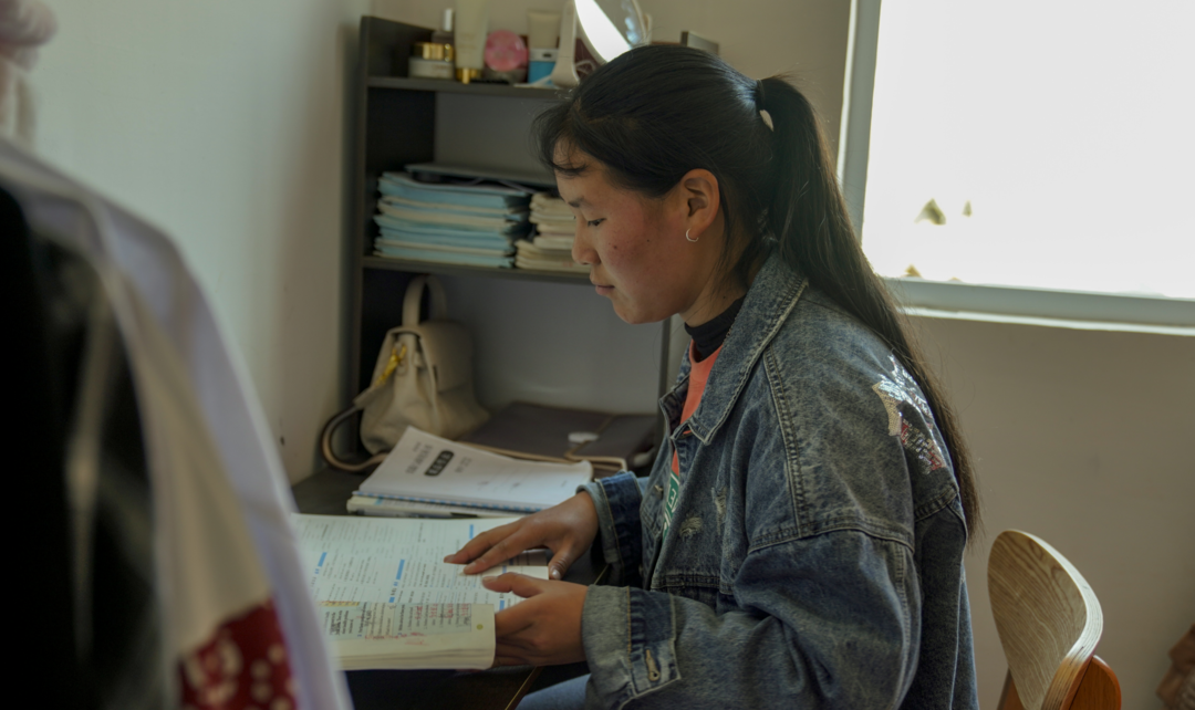 ▲ 2021年3月13日来自悬崖村的某色拉作在昭觉县城的新家里学习,她考上了昭觉最好的学校,杨涛拍摄
