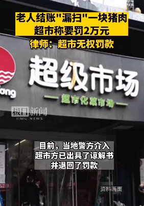 是在超市要求老人支付剩余“罚款”时才得知,