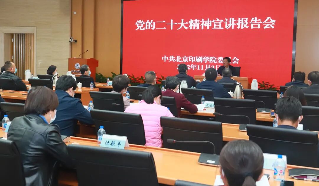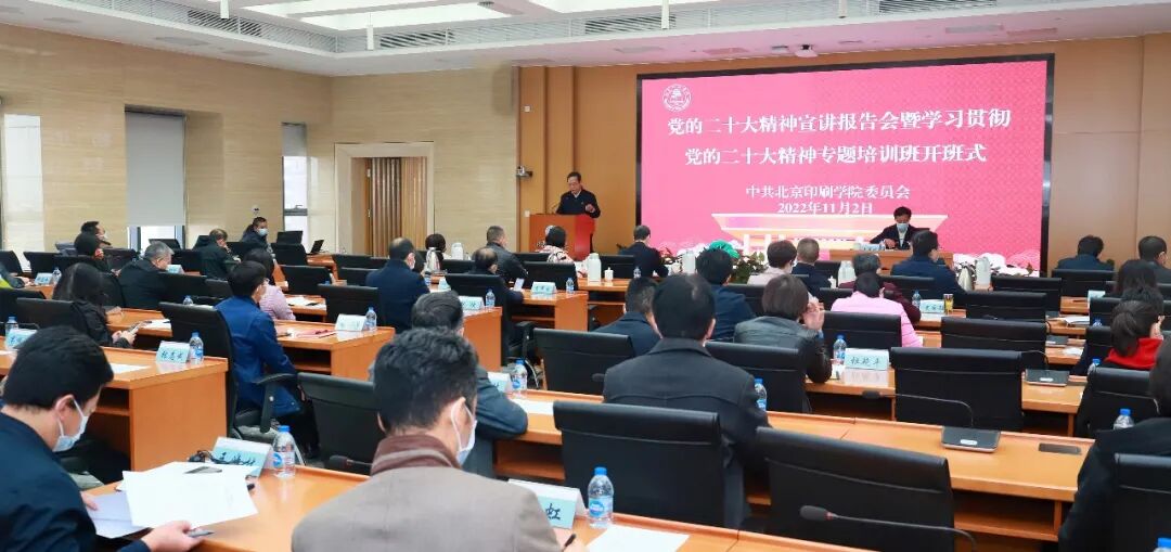 11月2日,北京印刷学院党的二十大精神宣讲报告会暨党的二十大精神专题培训班开班仪式在学校学术交流中心举行,党的二十大代表、大兴区委书记王有国来校作党的二十大精神宣讲报告。校院两级领导干部、五六级职员、全体教师党支部书记、马克思主义学院全体教师以及部分统战人士代表共计170余人参加宣讲会。党委书记高锦宏主持报告会并作开班动员。