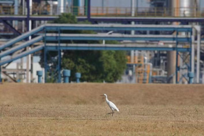中韩石化厂区内的白鹭园。 通讯员付松 摄