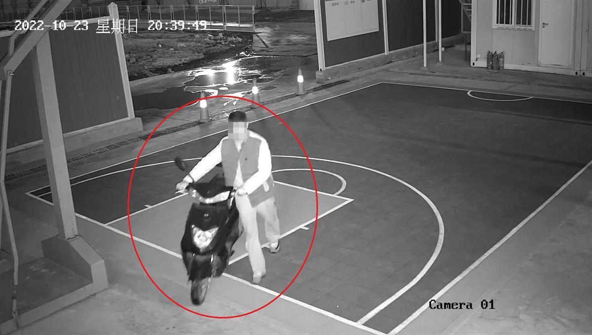 “该男子顶着摄像头作案。”张舜祺说,经过研判,10月23日晚,该男子来到王先生停放电动车的位置,在旁边停留了数分钟后,见周围没人注意,便将电动车推走,却没想到这一切都被监控探头拍了下来。