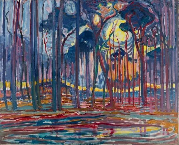 皮特·蒙德里安,《欧勒附近的树林》,1908年,布面油画,海牙艺术博物馆藏。