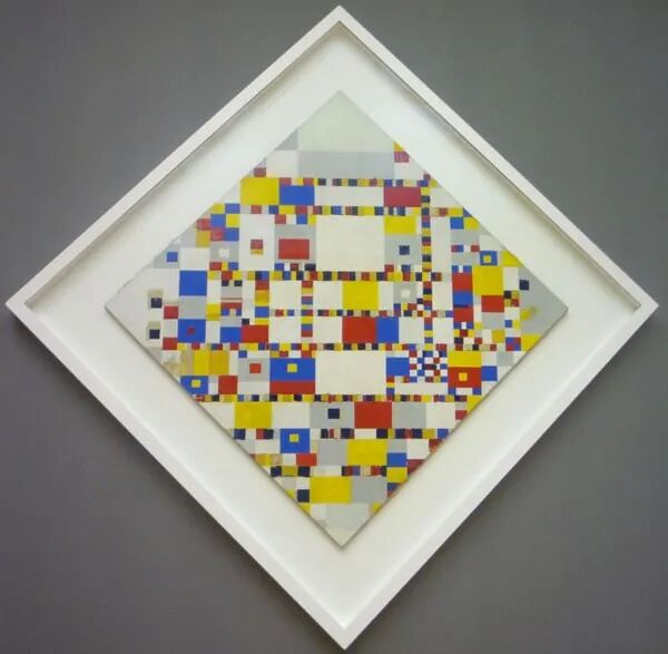 1940年,蒙德里安前往美国,定居纽约。他绘画中直线网格的灵感来自美国城市的布局和摩天大楼。他在世界范围内享有盛誉,尤其是他的画作《胜利之舞》(Victory Boogie-Woogie),被认为是20世纪最重要的作品之一。
