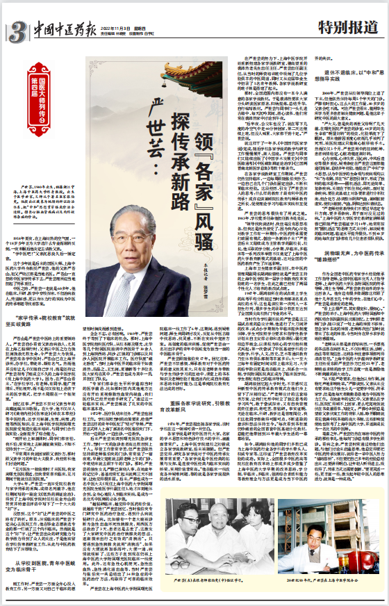 如今,胡鸿毅和他的同学们多数已成为上海中医药行业各学科的学术带头人、权威专家等,这印证了严世芸教育改革实验的成功。实际上,全国很多中医药高等院校在教育改革路上都或多或少借鉴了上海中医药大学早期的改革思路,学分制,早临床、多临床,强调综合素质和能力等教育理念与方法更是成为当下中医药界的共识。
