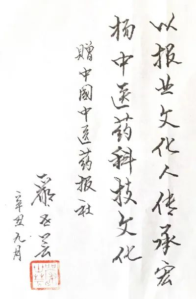 严世芸赠《中国中医药报》题字