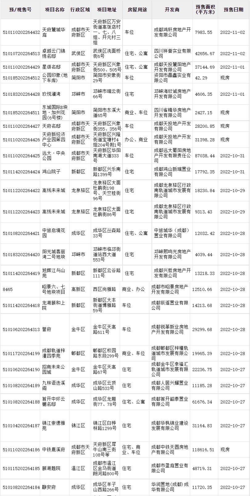 本周(10月27日-11月3日)大成都范围内,共有25个包含住宅、车位、商业、办公等产品的项目取得预售证。
