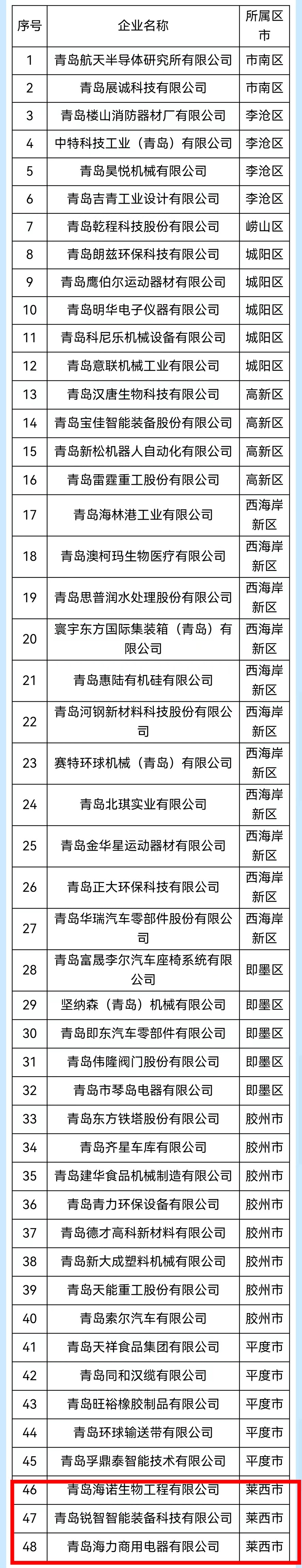 莱西融媒11月3日讯 近日,青岛市工业和信息化局公示了青岛市第六批市级工业设计中心拟认定名单,莱西市青岛海诺生物工程有限公司、青岛锐智智能装备有限公司、青岛海力商用电器有限公司三家企业的工业设计中心符合市级工业设计中心建设条件,入选拟认定企业。