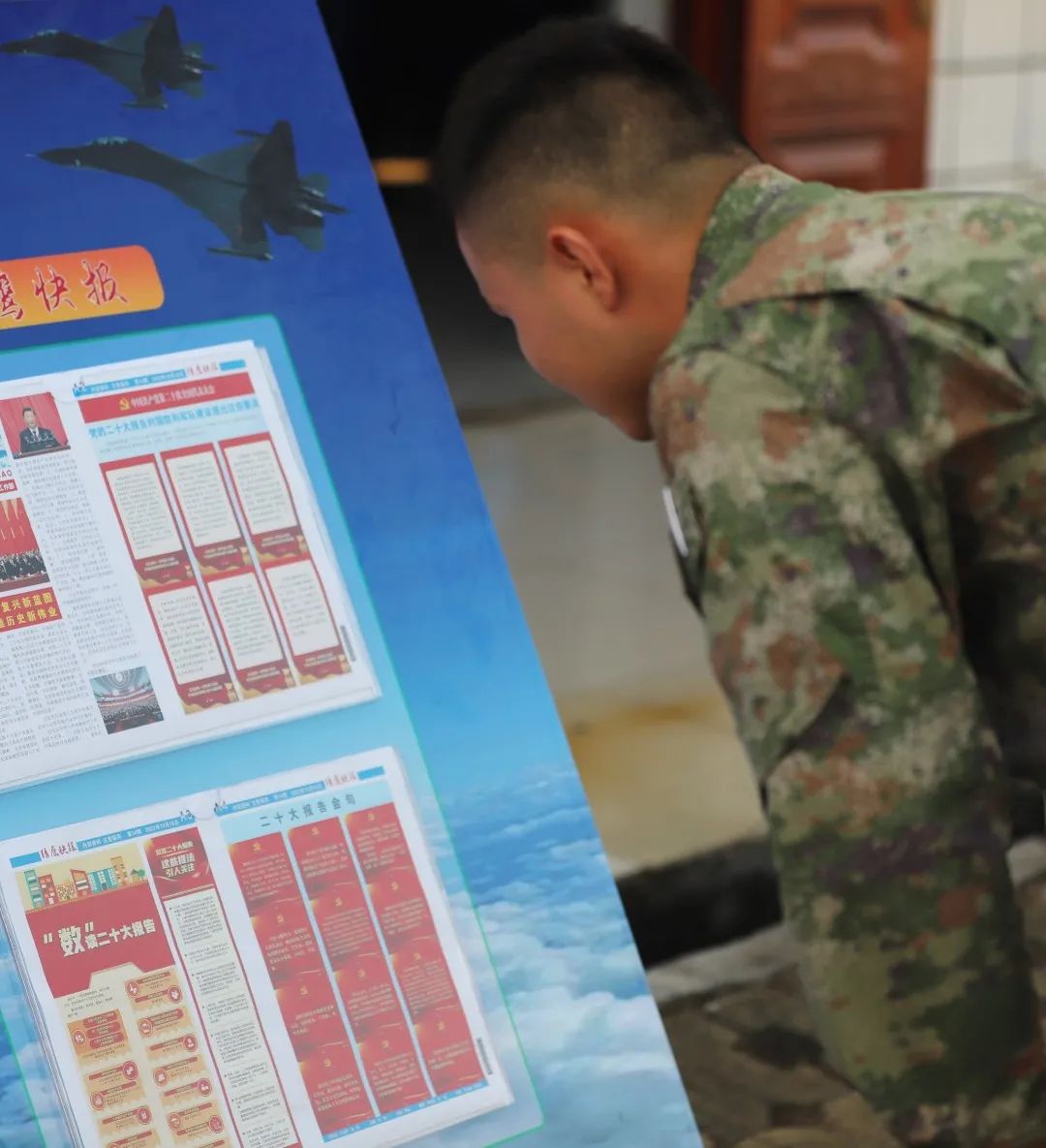 无论是在场站一个人或是两个人坚守的小远散通信台站,还是在紧张忙碌的飞行训练保障一线,无论是橱窗展板手册还是报纸广播网络,到处都是官兵们认真学习党的二十大精神的身影。