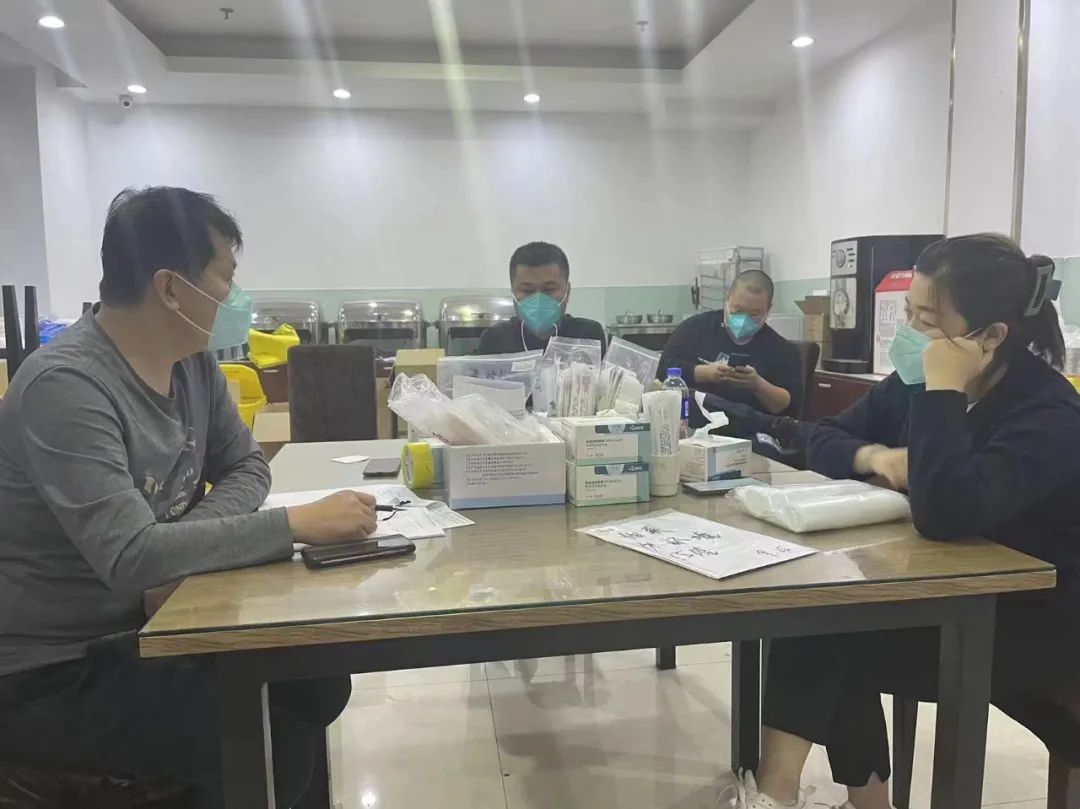 接到要求的当天,按照防疫指挥部的要求,4个组19人迅速集结在隔离酒店,由我来担任隔离点“点长”。没来得及把行李放在房间,我就立即组织相关人员,投入到工作当中。在听取了驻点信息员、医务组、宾馆组、公安组的汇报情况,120个房间,173人,风险非常高。我叮嘱大家,一定要保持谨慎的工作态度,对于要进入污染区的工作人员,一定要做好安全防护工作。在做完这一系列工作后,我又开始着手检查上墙材料、内业资料、宾馆消杀记录、合住情况表、重点人群情况表。