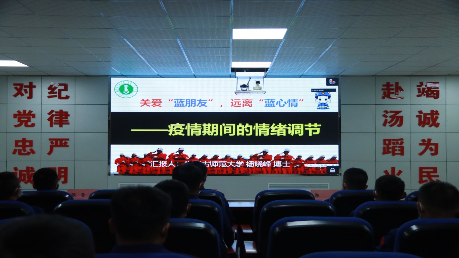 中队以内蒙古师范大学杨晓峰教授《疫情期间的情绪调节》为题,结合当前常态疫情防控,从专业的角度分析了当前队伍人员可能出现的心理问题以及产生原因,指出了几种错误的应对方式,并就如何合理调节情绪,提出了科学的指导和建议,指明了构建健康心态的科学路径。通过“云端”辅导授课,引导全体人员进一步掌握了自我心理调适的方式方法,懂得控制情绪,释放心理压力,增强了自我心理调适的能力。