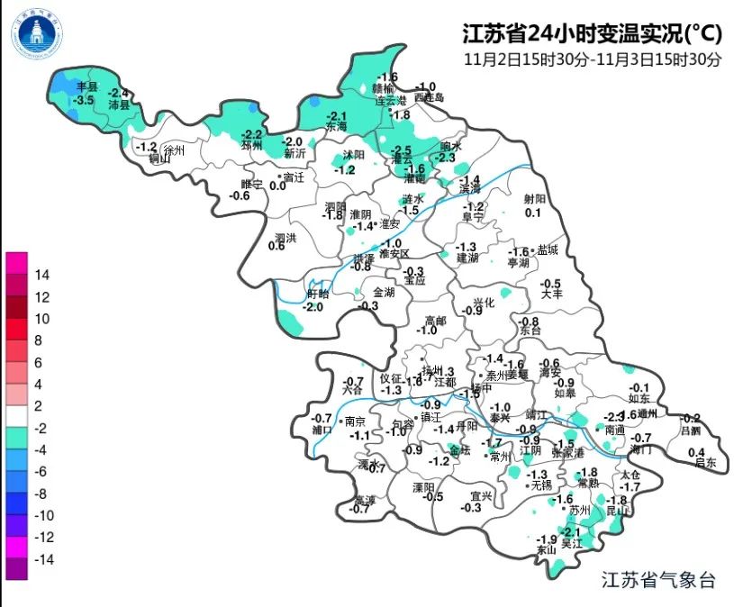 其中丰县降幅达3.5℃